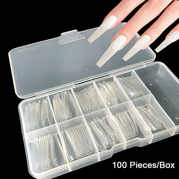 100pcs/box Press on False Nails Long Coffin clear Stiletto False Nails Tips Full Cover DIY Acrylic Fake Nails 10 Sizes Ballerina nails