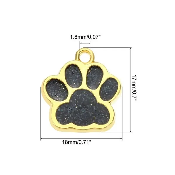 The perfect accessory to let everyone know how much you love your dog and all animal lovers, these sparkly charm are a fun and creative way to express your love for animals. Paw prints are perfect charm for dog tags,, necklaces, earrings, clothing, bags, key chains, cell phone straps, sweater chains and more. They can be used in various places in daily life. Specification Material:Alloy Size: Length is 0.7inch/17mm, the height of the hole is 0.1inch/1.8mm, Width is 0.7inch/18mm, the thickness is 0.1inch/2mm. Packing List: 10pcs x Paw Pendant Advantage The dog/cat paw pendant is made of high-quality alloy, which is strong and durable and not easy to deform and break. The plating is brightly colored and dotted, giving you a wonderful visual experience. The surface is smooth, feels good and comfortable to use. Instruction Use the string to hang the charm so your pet can keep it with them all day long. NOTE Please kindly check the size before purchasing.