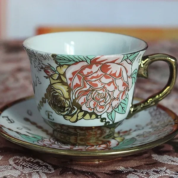 Specification: Set 6 ceramic cups + 6 spoons + 6 cuppads + 1 pot + 1 shelf Surface technology: electroplating Packaging: gift box