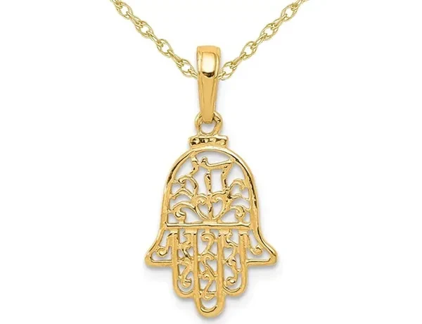 14K Yellow Gold Hamsa Pendant Necklace in with Chain