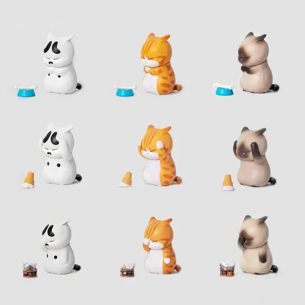 Pet Cat Figurines Model Toys Kawaii Unhappy Kitten Cat Figure Mini Animals Homecoming ornament Kid Xmas Gift Collection Material: PVC Size(approximately): 8*3*4cm Application: Having fun and collection Package: Packed in OPP bags ​