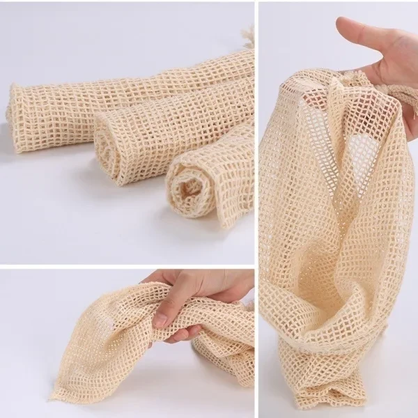 1Pcs/3Pcs(3Size) Reusable Product Bag Washable Environmentally Friendly Natural Cotton Mesh Bag