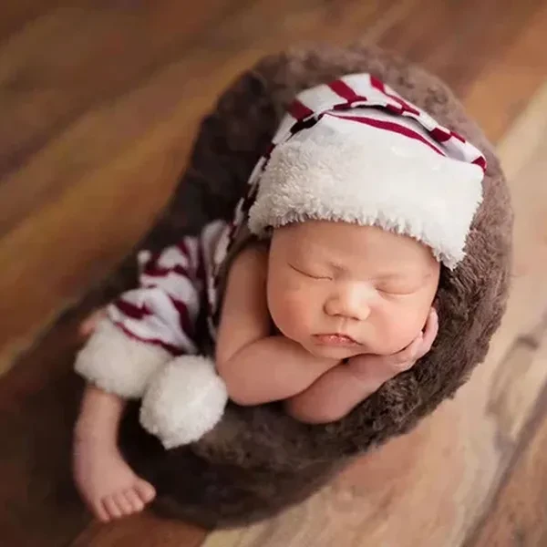 2Pcs Christmas Baby Infants Stripe Crochet Hat+Shorts Set Newborn Photography Props Infants Photo Shooting Costume Outfits LKS