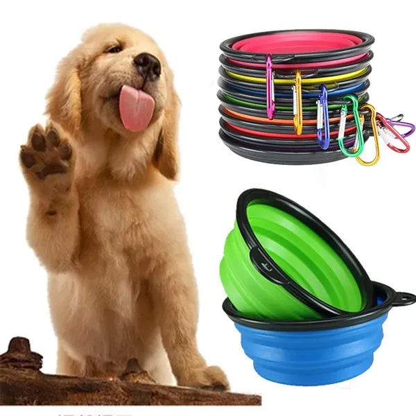 350ML Pet Products Silicone Bowl Pet Folding Portable Dog Bowls Wholesale for Food The Dog Drinking Water Bowl Pet Bowls with Carabiner