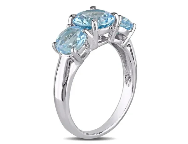 4.35 Carat (ctw) Blue Topaz Three Stone Ring in Sterling Silver