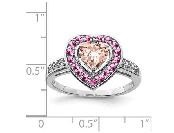 4/5 Carat (ctw) Morganite Heart Ring in Rhodium Plated Sterling Silver A stunning 4/5 carat heart shaped morganite gemstone sits in cool sleek rhodium plated sterling silver in the polished heart ring. Beautifully crafted in 0.925 sterling silver with a Polished Finish Stone Type: Morganite; Color: Pink; 0.85 CTW; Quantity: 1; Oval Shape; Natural; Prong Setting This item ships directly from the USA. If you are not completely satisfied, simply return for a 100% refund This item ships in signature jewelry box packaging, ready for gift-giving with a classic, elegant look and feel This Heart Ring is the perfect gift for any birthday, anniversary, holidays, thank you, thinking of you, or for any reason at all SKU: 68QGG4521MO-P
