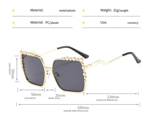 46340 Pearl Square Luxury Metal Frame Sunglasses Men Women Fashion Shades UV400 Vintage Glasses