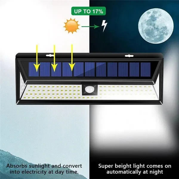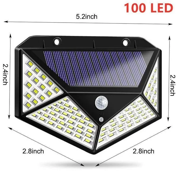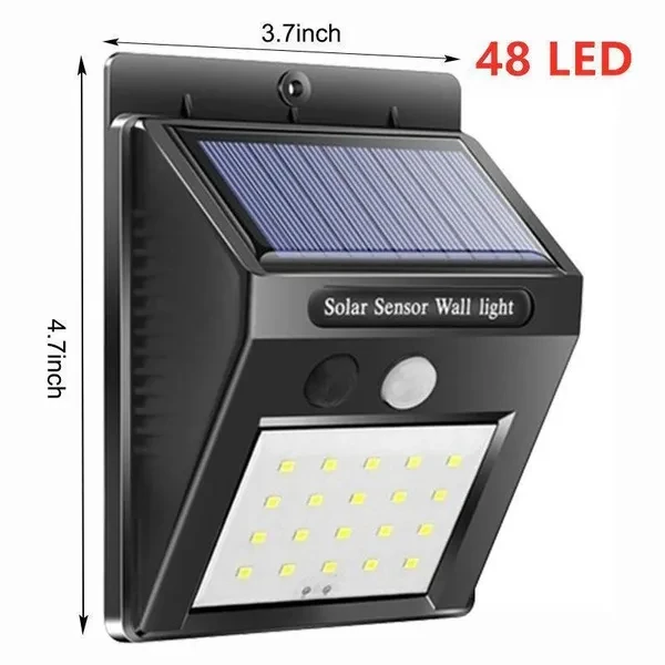 Specifications: Type: solar wall lamp Water resistant: IP65 Solar panel power: 3 W Power of the product: 5 W Light source: 48/100/180 LED Brightness: 1000 lumens Charging method: Solar charge Charging time: around 8 hours Usage time: about 8 hours Motion sensor: PIR sensor Sensor distance: 8-10 meters Sensor Angle: 270° Mode 1: Motion sensor light Mode 2: Light in darkness MODE 3: Motion sensor light Panel Battery: 3.7 V / 2200 MAH (18650 lithium battery included) x2 Product size: 300x110x50mm Features: -1000 lumens Super bright light : LED distribution lights 118 provide a super bright light with a maximum of 1000 lumens, meets your lighting and security requirements - Longer work time: Absorb more solar energy in the 2200 mAh rechargeable battery of the Sun due to the larger area of ​​the solar panel, conversion rate to 17%, enjoy a longer working time that works up to 500 times in bright mode. -3 optional lighting modes: Medium light mode, dim light sensor light mode and sensor mode, press the button on the back of the light to choose the appropriate mode you want (strong light remains at 30 o'clock) s while motion is detected) Lighting: Charging during the day, automatically turns on all the lights at night. The lighting time is approximately 7-8 hours after full charge. Dim light sensor light mode: Daytime charge, automatic light on dim light when in the dark or at night when no movement is detected. It becomes bright light when movement is detected and lasts between 15 and 30 seconds. Motion sensor: Charge in the day, automatic light on bright light when it is in the dark or at night when movement is detected and lasts around 15 -30 seconds! -Powerful movement SENSOR head: The largest PIR sensor detects people or animals up to 8-10 meters with the maximum angle of 120 degrees, when people pass, the light will be in the mode you choose. -IP65 waterproof and heat resistant: Made of high impact ABS that can withstand rain, snow, sled and other extreme weather conditions. IP65 waterproof and heat resistant solar outdoor security lights for garden entrance pool garage stairs porch etc. We also simplify the installation and we are equipped with a complete set of screws, without cable and easy assembly. Package includes: 1 x Solar Wall Lamp 2 x Screw 1 x User's manual Note: 1. Direct sunlight to solar panels, avoid obstacles. 2 Do not put the solar panels under strong lamp light or other lights, it may be affected by them and not bright. 3. Before the first use, charge 24 hours in the sun. 4. When the darkness falls, the central sections will light automatically, the day will be charged automatically. 5 In winter, sunlight can not be fully charged due to lack of light. So it's normal if the sunlight is not bright enough and the lighting time is short. The light time depends on how much is charged during the day. Name of responsible person:SUCCESS COURIER SL Address of the responsible person:CALLERIO TORMES NUM.1,PLANTA1,DERECHA,OFICINA3, Fuenlabrada, Madrid,28947 Responsible Person Email:Spainsuccessservice2@hotmail.com