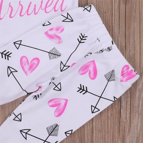WELCOME - Quality is the first with best service. customers all are our friends. - Fashion design, New,high quality! Brand: Unbranded Pattern: Novelty & Arrow Printed Color: White /Pink Occasion: Party/Casual/Birthday Season: Spring/Summer/Fall/Winter Sleeve Length: Long Sleeve Country/Region of Manufacture: China Listing Includes: 4PCS Baby Girl Outfit - Sizes: 70/80/90/100 Cm There is 2-3% difference according to manual measurement. please check the measurement chart carefully before you buy the item. 1 inch = 2.54 cm Please note that slight color difference should be acceptable due to the light and screen. What You Got: (Headband is included) 1 x Hat 1 x Headband 1 x Long Sleeve Romper 1 x Long Pants