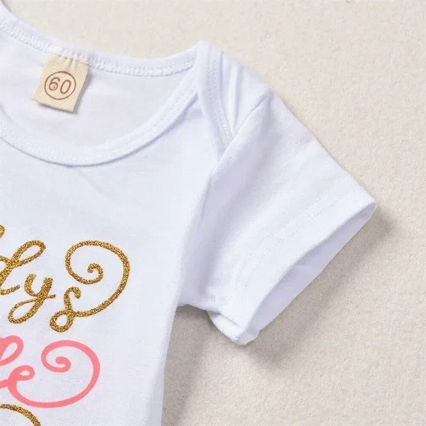 Features This dress is super soft, comfortable, breathable and harmless to the sensitive skin of baby girls. Your princess will get a lot of praise. Size chart: Size(cm) 60 Romper Length: 36 Bust: 44 Pant Length: 34 Age: Newborn 70 Romper Length: 38 Bust: 46 Pant Length: 36 Age: 0-3 Months 80 Romper Length: 40 Bust: 48 Pant Length: 39 Age: 3-6 Months 90 Romper Length: 42 Bust: 50 Pant Length: 42 Age: 6-12 Months 100 Romper Length: 44 Bust: 52 Pant Length: 45 Age: 12-18 Months Size(inch) 60 Romper Length: 14.17 Bust: 17.32 Pant Length: 13.39 Age: Newborn 70 Romper Length: 14.96 Bust: 18.11 Pant Length: 14.17 Age: 0-3 Months 80 Romper Length: 15.75 Bust: 18.90 Pant Length: 15.35 Age: 3-6 Months 90 Romper Length: 16.54 Bust: 19.69 Pant Length: 16.54 Age: 6-12 Months 100 Romper Length: 17.32 Bust: 20.47 Pant Length: 17.72 Age: 12-18 Months Specifications: Material: Cotton Gender: Baby Girl Color: White Occasions: Daily, Party, Performance Sleeve: Short sleeve Pattern: Letters, Flowers Design: Elastic waist, Snap Age: 0-18 months Package Contents 1 * Jumpsuit +1* Hair band +1* Pants+1 * Hat Note: 1. Please understand there may be 1-2 cm deviation exist. 2. Due to the lighting and monitors, there are slight difference between the picture and the real item. Promise If the product has any quality problems, please feel free to contact us, we will help you solve the problem as quickly as possible.