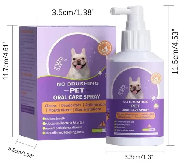 Features: 1. Removes bad breath from pets such as cats and dogs. 2. Keep your pet's mouth and teeth healthy. 3. Suitable for pets who don't like to brush their teeth. 4. Easy to carry, suitable for short-term travel with pets. Specification: Net Content: 50ml Shelf Year: 3 years How To Use: 1. Lift lips on either side of your pet’s mouth. 2. Spray 2-3 pumps directly into the mouth daily. 3. Do not let your pet eat or drink for one hour after use. Package Included: 1/5/10 Pcs * Teeth Cleaning Spray for Dogs & Cats