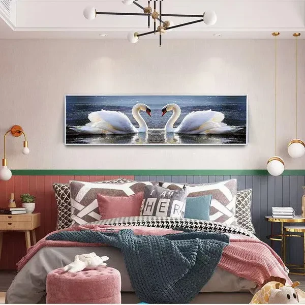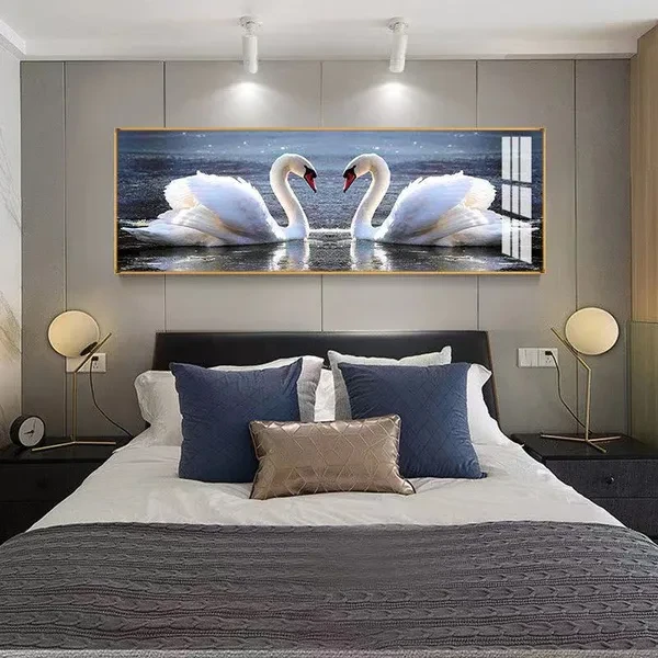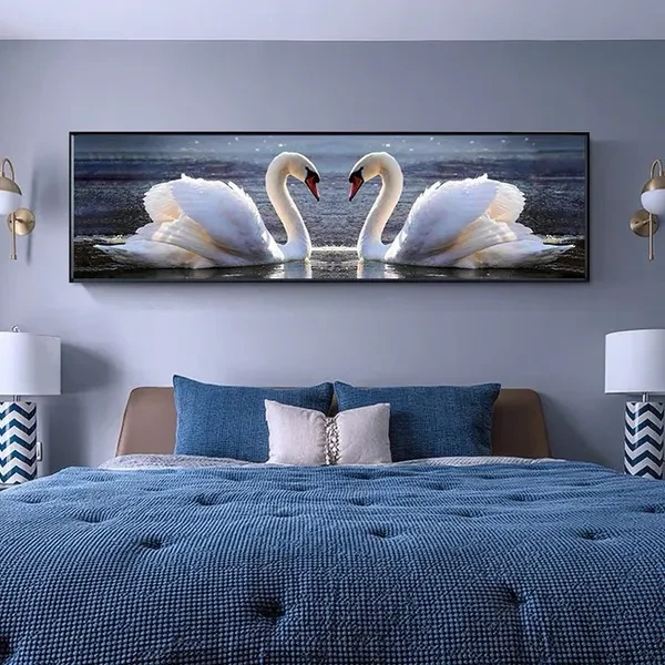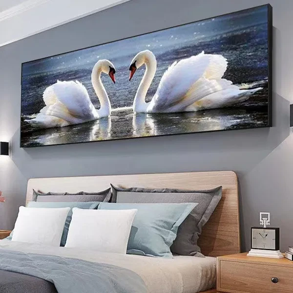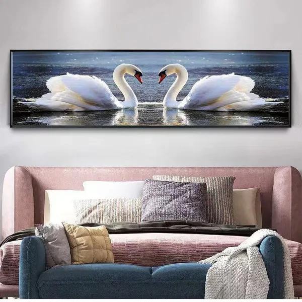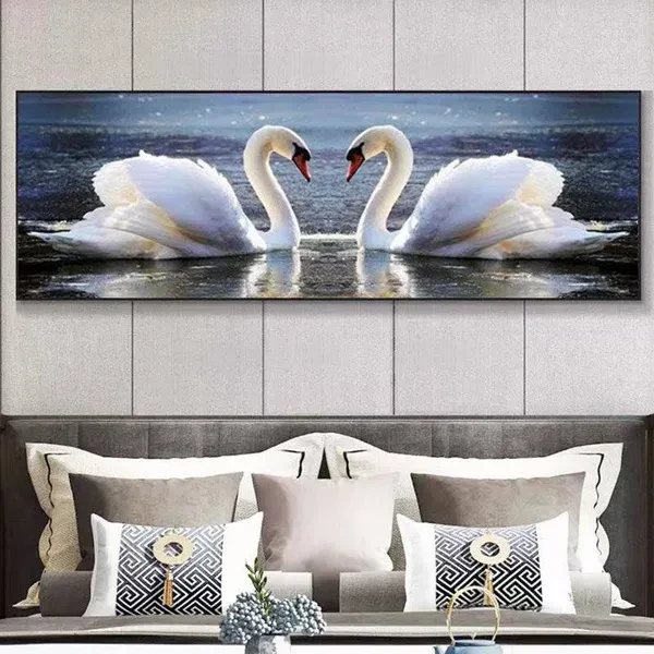 5D Diy Full Diamond Painting Embroidery Cross Stitch Romantic Swan Round Diamond Animals Livingroom Bedroom Home Paintings Decor Hobbies Crafts