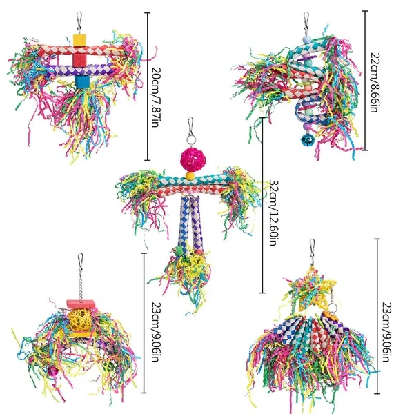 <p>5Pcs Bird Shredding Toys for Parakeet Parrot Chewing Foraging Toy Wooden Blocks Cage Accessories for Small Medium Birds Features: 100% brand new and high quality 5 Types: The set includes 5pcs different types of colorful bird shredding toys, ideal size for small and medium birds, such as parakeets, conures, cockatiel, lovebirds, etc. Keep Birds Active: Chewing and shredding are natural behaviors of birds that are associated with foraging and nesting, which can make birds have hours of fun every day as well as help promote their physical health. Safe Material: Our bird foraging toys are made of edible crinkly papers, non toxic, safe for birds to peck, chew and play. Your pet can enjoy them without any worries. Best Bird Toys: These bird shredding toys are stuffed with bright colorful crinkly paper, which will easily catch birds' eyes and attract birds to play and keep busy for a long period. Perfect gift for your birds. Easy to Install: All the bird toys come with an active hook to easily connect on the top of most bird cages. Specification: Material: Paper Color: Colorful as Pictures Show (Random Color) Size (Approx.): Height 20cm/7.87in, 22cm/8.66in, 23cm/9.05in, 32cm/12.6in Weight: Approx.300g Package Includes: 5 Pieces Parrot Shredding Toys (Random Colors) note: 1.Please allow 0-1cm error due to manual measurement. pls make sure you do not mind before you bid. 2.Due to the difference between different monitors, the picture may not reflect the actual color of the item. Thank you! </p>