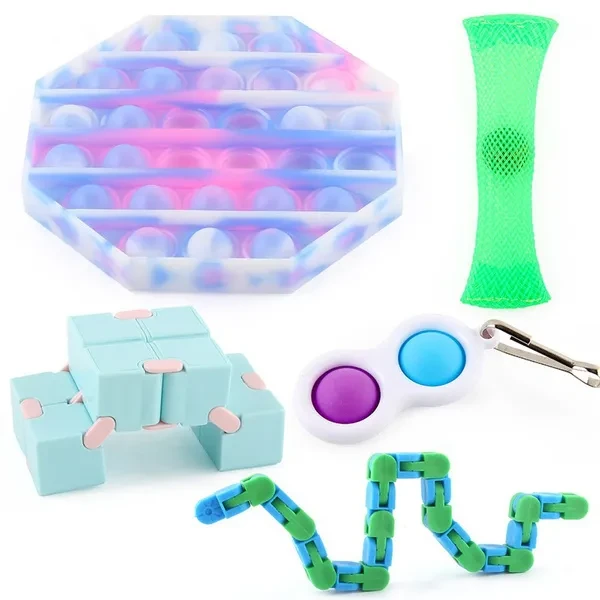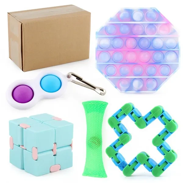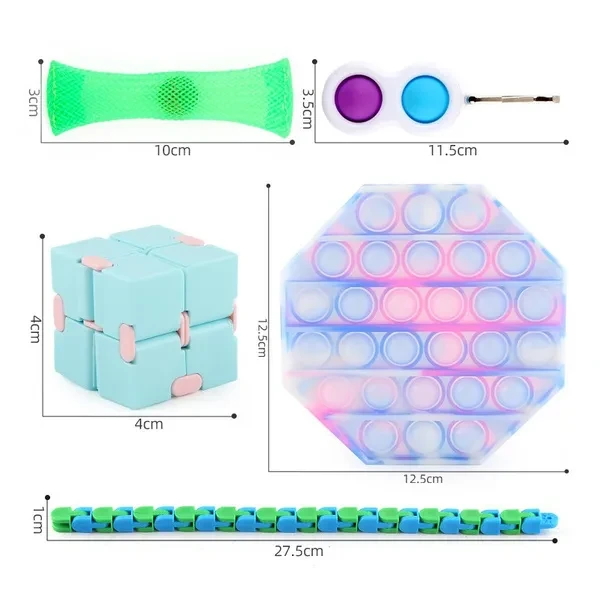 Name: 5PCS decompression toy set Suitable age: 3+ made in China Brand: Chengke Toys Color: 175g express box, 135g OPP package Number of products:20 pcs Color: Storage box set 558.2g, OPP package 352.6g Material: rubber, plastic