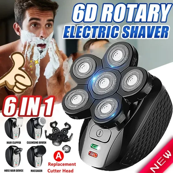 6D Multifunctional Electric Razor for Men Upgrade 6 in 1 Shavers Bald Head Shaver Grooming Kit USB Rechargeable Cordless Waterproof Hair Trimmer