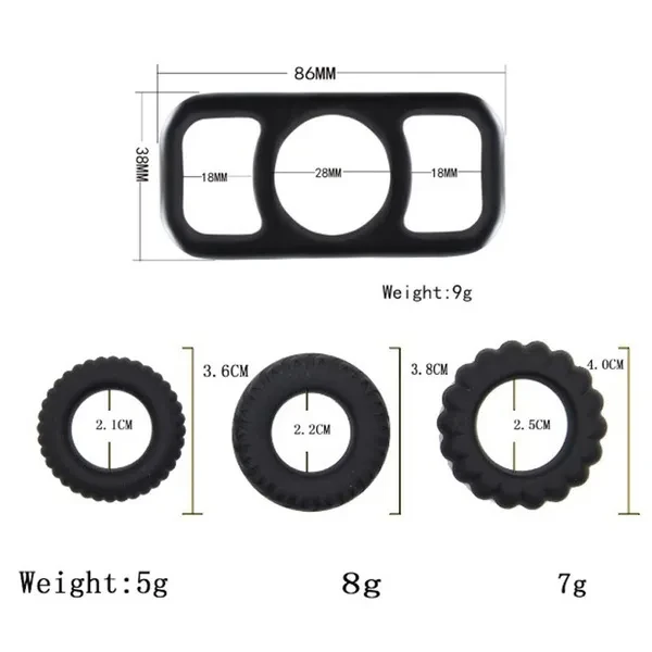 Specification: Item: Elastic Penis Cock Ring Color: Black Material: Silicone Style: A/B/C/D/E/FG/H Size: as the photo or common use size Effectively inhibit ejaculation, phisical help erection Super stretchable and elastic for a comfortable wearing Can be used with condom or alone Bring more overall satisfying sexual experience for lovers and couples To be strong man and give her lasting love. Enjoy yoursleves. Package including: 1/2/3/4/7 pcs of sperm ring per set