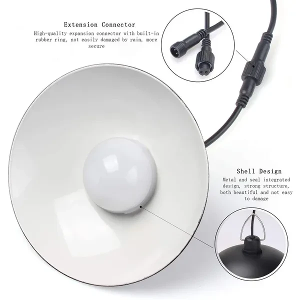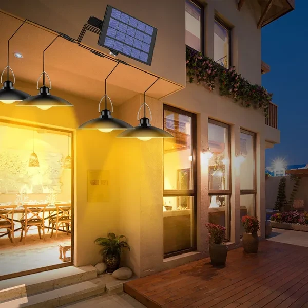 ►NOTES: 1.When using for the first time, you need to turn on the button behind the panel to charge successfully 2.Please let it under sunshine to charge it for several hours when you use it at first time 3.The efficiency of the solar panel depends on the weather,the strong sunshine it has,the better efficiency it will be,the efficiency of the panel will be weakened on cloudy day,the longer sunshine it has,the working time will be longer The specifications Product Name: LED Solar Pendant Light Brand: TRLIFE LED type: upgrade SMD LED Quantity: Each head with 20 LEDs Solar Panel: 5V 15w for 4 headlights Led light color: warm white / white shade Material: PC shell Material: PC + ABS Operating mode: automatically turn on at night until the power is off Installation steps: 1. Connect the solar panel connector line first, 2. Install the solar panel and set the outdoor sun exposure position 3. Hang the lamp cover housing and set the lighting position 4. Distribute the 3 meter extension cable Specification: 4 options: single head, two heads, three heads, four heads LED beads: 20 pieces, 40 pieces, 60 pieces, 80 pieces LED light color: warm white, white Color Temperature (warm light): 3000K - 4500K Color Temperature (white light): 6000K Waterproof: IP65 Lampshade Material: PC Shell material: PC + ABS Package listing:(Optional) 1 x Solar Panel 1/2/3/4 x Heads 1 x Extra 3 meters Cable 1 set of screw accessories
