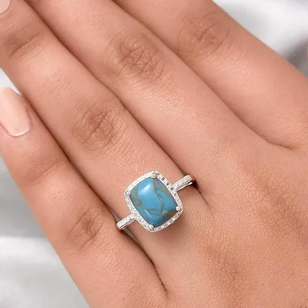 QUALITY CRAFTSMANSHIP: Made using sterling silver ,this Ring is built to last The immaculate construction of this piece is a testament to the care we put into everything we do, and the Prong Setting setting shows off the true beauty of the stones. This Ring is a beautiful piece that deserves a place in almost any jewelry collection. METAL: This gorgeous statement rings is made of Sterling Silver which makes it truly shine. GIFT PACKAGING: Your item arrives in a complimentary grey gift box for safekeeping or for any special occasion like your anniversary, engagement, or wedding. 6 MONTH COVERAGE PROGRAM: Buy with 100% confidence as all your Jewelry is covered under our 6 months coverage program that is limited to manufacturing defects All ShopLC 925 Sterling Silver Jewelry is genuine silver and stamped with 925S on the inside. Product Details: Metal: 925 Sterling Silver Setting Type: Prong Setting Color: Blue Stone 1 Details: Stone Name: Turquoise Shape: Cushion Color: Blue Creation Method: Natural Treatment Method: Zachery Treated General Jewelry Care Tips: 1. Avoid rough handling with all gemstones and store jewelry separately from one another to avoid scratching. 2. Lotion, hairspray and makeup may also cause discoloration of jewelry. When applying these items, wait until they have dried before donning your jewelry.