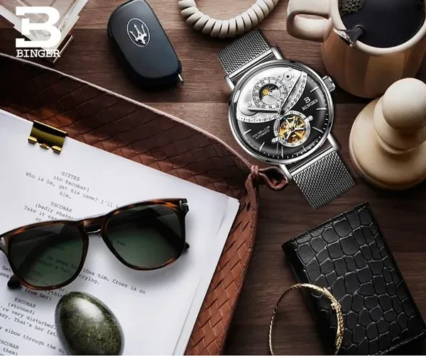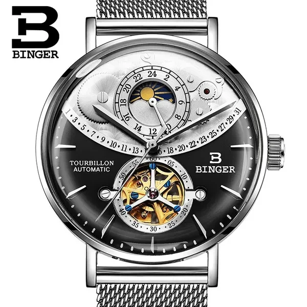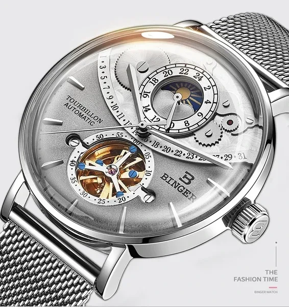 Note: There is no calendar function and the calendar window is decorated. Description Model Number: B-MS10002G-3 Item Type: Mechanical Wrist Feature: Water Resistant,24-hour indication, moon phase Water Resistance Depth: 3Bar Dial Diameter: 42mm Band Length: 21cm Case Thickness: 16mm Clasp Type: Hook Buckle Band Width: 20mm Case Material: Stainless Steel Band Material Type: Stainless Steel Dial Window Material Type: Curved mirror Movement: Automatic Self-Wind weight: 90G Feature: - Advanced manufacturing technology; - Cool & Specially designed big display screen; - Watch Crown With Environmental IPS Bronze Electroplating; - Stainless steel buckle & back case with 3D BINGER logo; - Display system of 12 hours or 24 hours; - 30 Meters Water Resistant(Please Don't Press Any Keys Underwater); Package included: -1 * Watch -1 * Gift Box -1 * Manual Instruction Please give us a five-star feedback if you are satisfied with our products and service. Reminder: 1. Please peel all films off before wearing. 2. Please keep the watch away from magnet to avoid making the watch stop working. 3. Turn normal position crown clockwise 30~40 rounds to wind up fully. 4. Stop turning the crown once you feel the spring tight.Otherwise it will lead to the crown off. Items will be shipped via the registered number of registered numbers, depending on the destination and other factors (custom clearance or vacation period, etc.). Delivery time is continuous. A) United States, Canada, Australia: 7-25 business days. B, UK, France, Germany, Sweden, Austria, Belgium, Denmark, Ireland, Luxembourg, Jack, Greece, Hungary, Iceland, Italy, Portugal, Romania, Slovakia, Spain, Switzerland: 8-25 business days. C) Other countries: 15-60 working days. Please note that the delivery time may be longer, especially at peak or bad weather conditions. If you pay now, we will ship within 48 hours! Wish you happy!