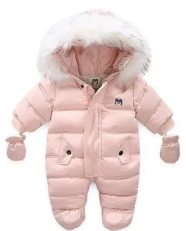 Baby Girls Boys Zipper Down Jumpsuits with Gloves Winter Romper Jumpsuit Romper Outfits
