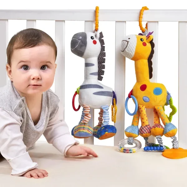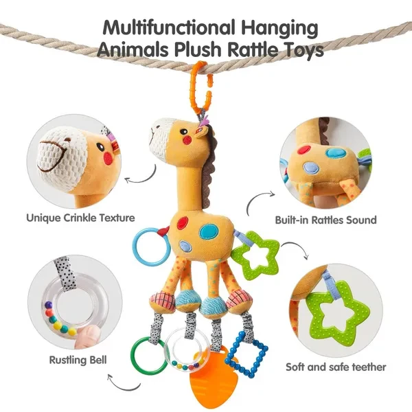 Baby Hanging Toys, Plush Animals Baby Rattle Crinkle Squeaky Toys Crib Toys Car Seat Stroller Mobile Toys, Baby Toys for 0 3 6 9 12 Months