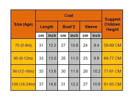 100% Brand New&Good Quality Sleeves: Long Sleeve Material: Cotton,Fleece Main Color: As The Picture Size: 70 80 90 100 suits for 0-24 months Please check our detailed size chart, 1 CM=0.39 INCH. Attention: - Manual size measurements, please allow 1-3 CM differs. - Color may be little different due to monitor, thank you. Package included: 1 x Bear Coat