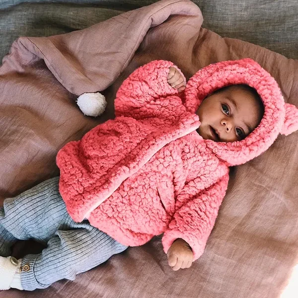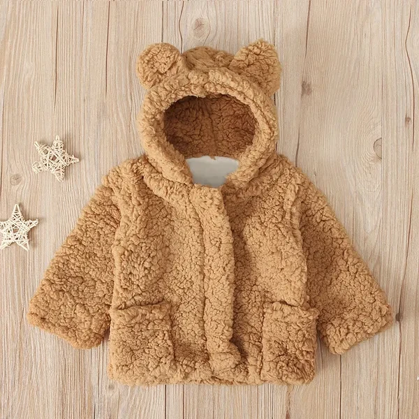 Baby Jacket Winter Warm Fleece Hooded Bear Coat Windbreaker Outerwear Clothes