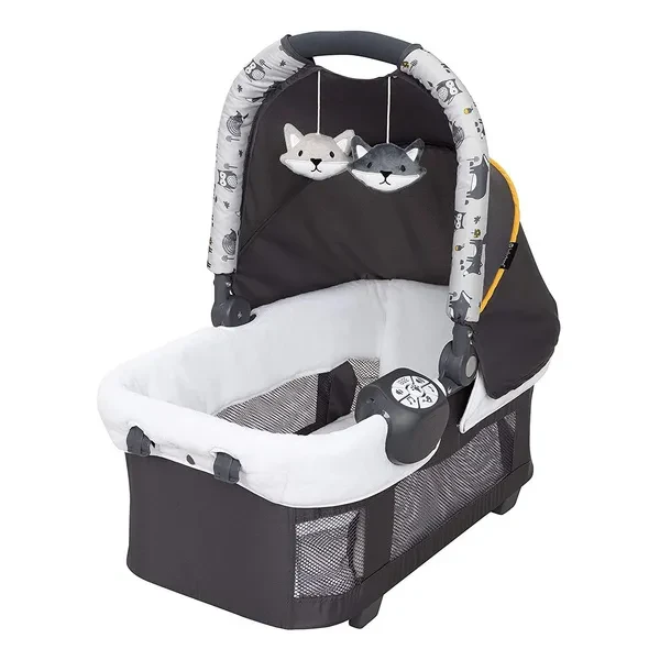 Recommended for newborns, this play nursery has everything your little ones need to stay entertained. Equipped with 2 detachable full-sized bassinet with toys and 1 spacious play yard, your infants will love spending time in the Baby Trend Twin Nursery Center. Lay your babies on the foam mattress for a nap, activate the music center to soothe your babies to sleep, and enjoy some much-deserved "you" time.