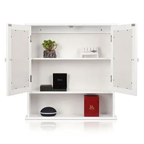 Introductions: If you are looking for a cabinet to store your cutter, this Double Door Mirror Indoor Bathroom Wall Mounted Cabinet Shelf must be a good choice for you. It's fantastic for the bathroom or in any other room where you require some additional storage. Adopting high quality MDF material, it features smooth, stable and sturdy. With a mirror design, it's very convenient for use. Moreover, it's wall-mounted, which is space saving. With high quality and fine workmanship, it's worth buying! So don't hesitate, just take it home! Features 1. Made of high quality material, smooth, sturdy and durable 2. Waterproof, suitable for humid environment 3. It has a long service life 4. Wall-mounted, save space 5. Add some additional storage for you 6. Magnetic lock to hold doors shut 7. Convenient for use Specifications: 1. Material: MDF 2. Color: White 3. Dimensions: (22 x 5.1 x 22.8)" / (56 x 13 x 58)cm (L x W x H) 4. Weight: 13.23 lbs / 6 kg Package Includes: 1 x Double Mirror Bathroom Cabinet 1 x Manual