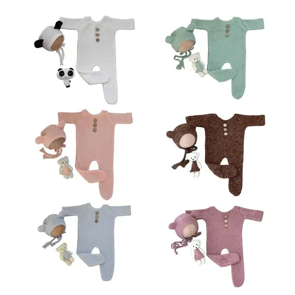 Bear Themed Outfit Hat Jumpsuit Bear Set Baby Photography Props Newborn Photoshooting Accessories Infant Photo Suit