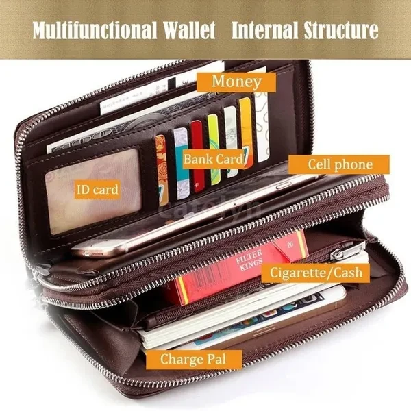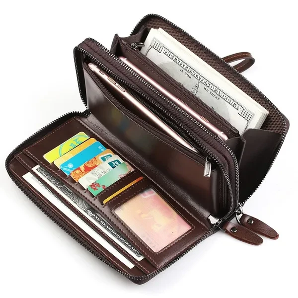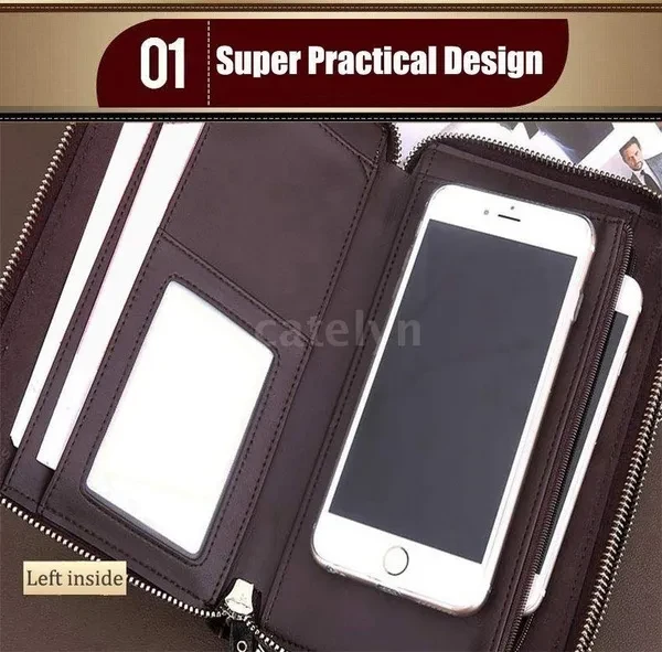 Business Men Luxury Wallets Long PU Leather Cell Phone Clutch Wallet Purse Hand Bag Top Zipper Large Wallet Card Holders