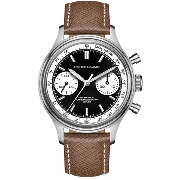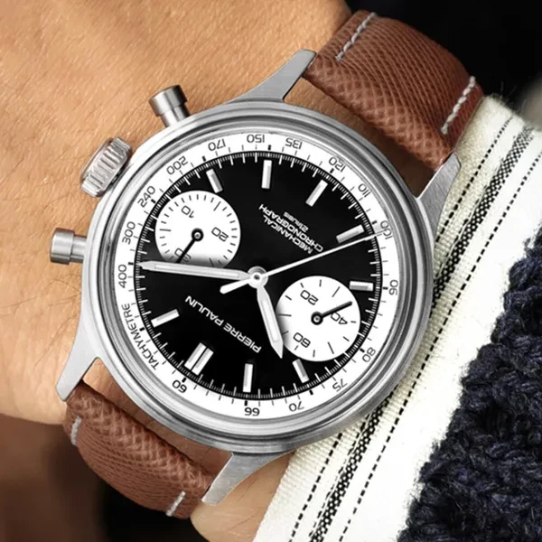 Business Men's Panda Chronograph Super Luminous 38mm Acrylic Watches 1963 Sea-gull Movement Gooseneck Mechanical Hand Wind Clock Fashion Luxury