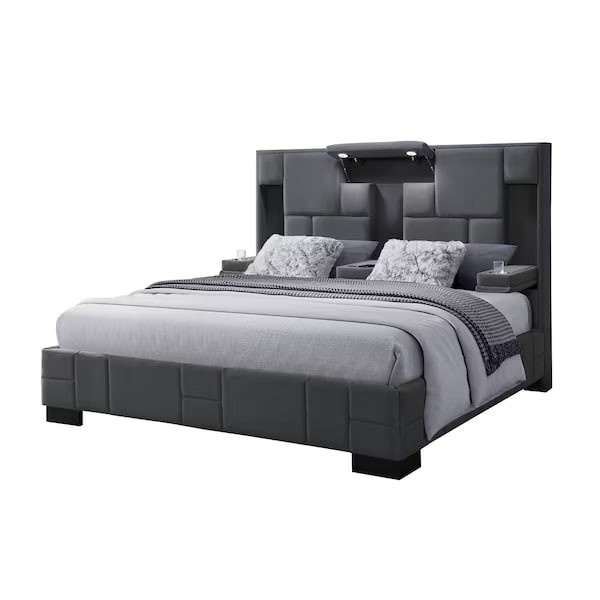Contemporary Oscar Dark Grey 8 Queen Bed No Wood Trim