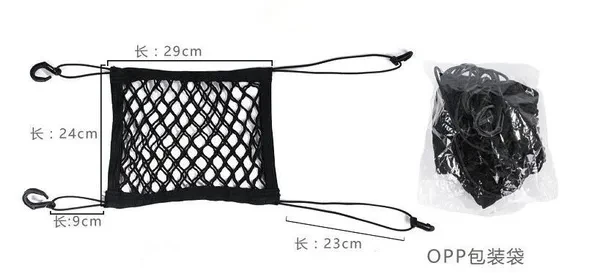 Characteristics: * Equipped with 4 reliable safety hooks, no need to drill or paste, saving time and effort. * Prevent naughty children or pets in the back seat interfering with your daily driving while traveling. * This product adopts improved polyester fiber, which has strong flexibility. * The product has good flexibility and adapts to different vehicle seats. * Capable of effectively intercepting small and medium-sized dogs. Color: Black Material: Oxford cloth Size: 29 * 24cm / 11.41 * 9.44 "(not including rope length) Function: Child / Pet Barrier Product Type: Car Rear Seat Barrier Net Package: 1PCS Our car screen has two layers, you can put some small items on these, such as: cell phones, wallets, lipsticks, water, perfumes, etc., to bring us more convenience. Our car screen durable and long lasting, strong hooks in bungee cords is not easily deformed, protective cover designed will not hurt the dogs. NOTE 1.Please allow slight deviation for the measurement. 2.Due to the light and screen difference, the item's color may be slightly different from the pictures,thanks for understanding.