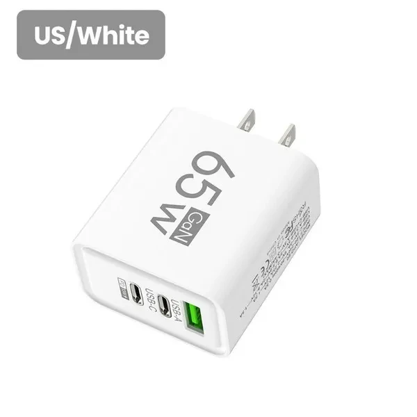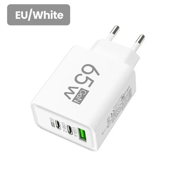 Elough 65W Mobile Phone Chargers USB C PD QC3.0 3 Ports GaN Quick Charging Cellphone Charger Dual Type C Data Cables for Phone Laptop