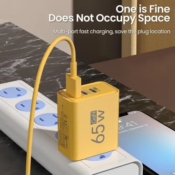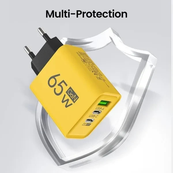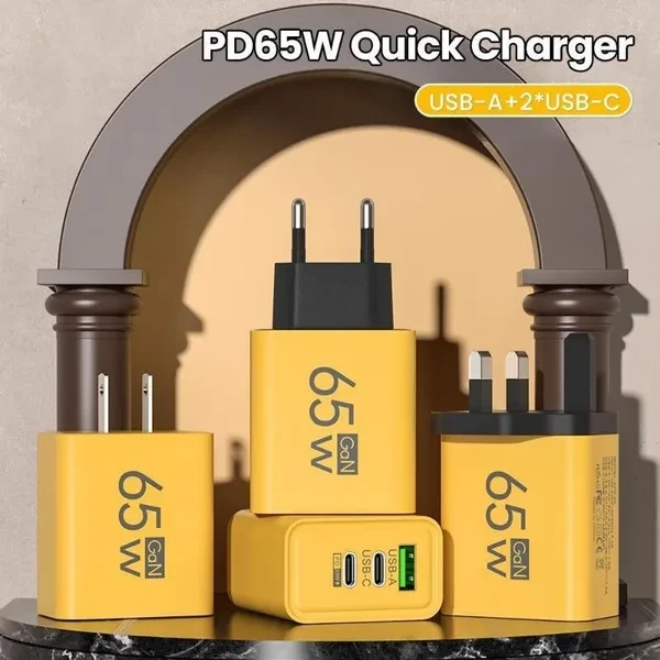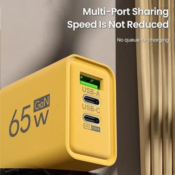 Brand Name : elough Certification : RoHS,FCC,CE Origin : Mainland China Intelligent Charge : Yes GaN : YES Max. Output Power : 65W Type : Travel Model Number : US/UK/EU charger Color: Yellow, White Power Source : A.C. Source Output Interface : USB,2 C Ports