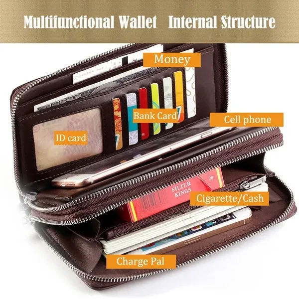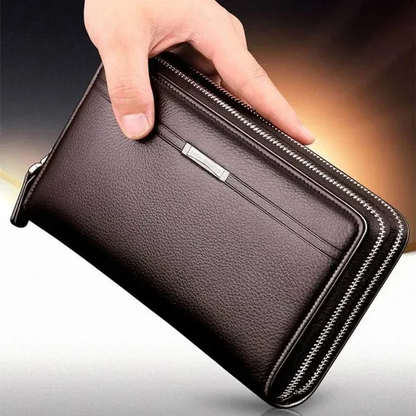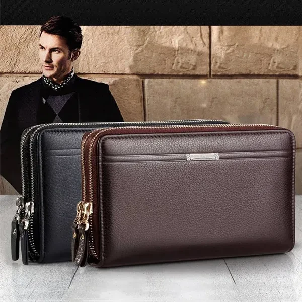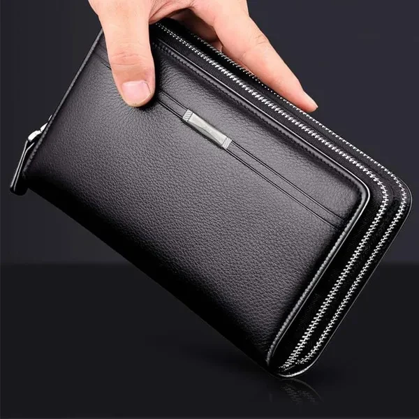 Fashion Business Men's PU Leather Wallets Handbag Multifunctional Bank/ID Card Holder Wallet Double Zippers Large Capacity Clutch Bag