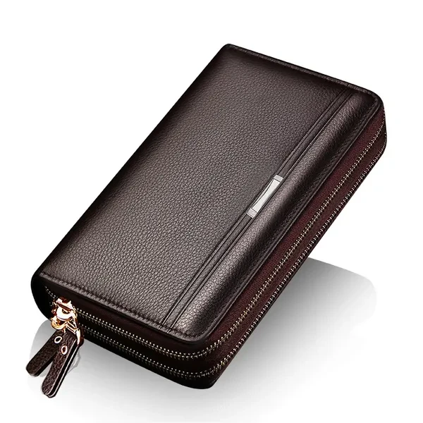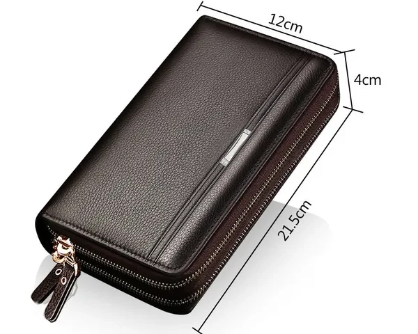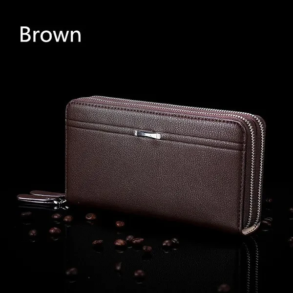 Fashion Double Zipper Men Clutch Bag PU Leather Large Capacity Mens Handbag Phone Wallet Card Holder