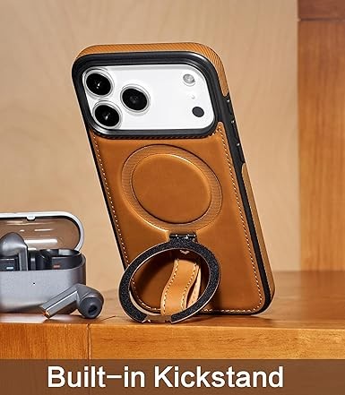 for iPhone 17 Pro Max Case Leather iPhone 17 Pro Max Leather Case with Stand Compatible with MagSafe with Magnetic Ring Grip Holder (Brown, IP17 Pro Max-6.9inch)