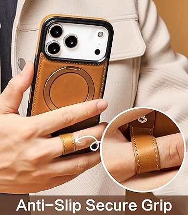• Anti-Slippery Leather Loop: Unique design for iPhone 17 Pro Max Case Leather prevents from slipping out of hand. Easing pressure on your pinky. Keeps a lot of tension off hand to prevent thumb pain.