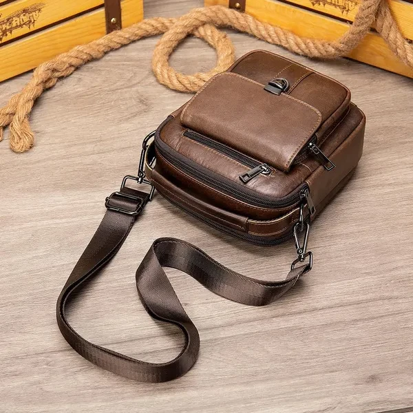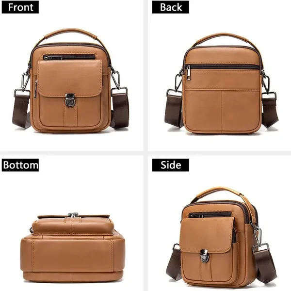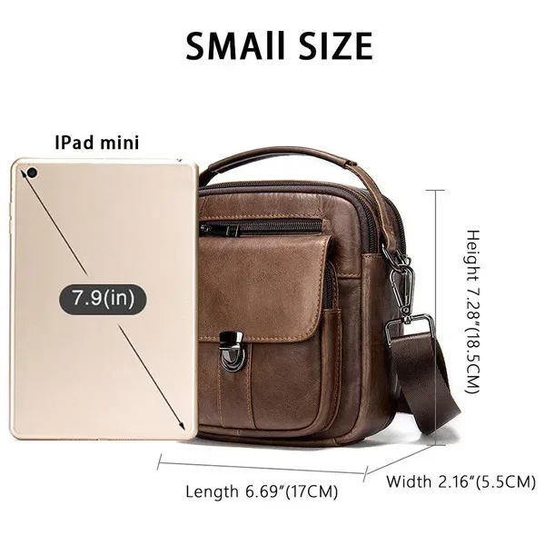 Size: 7"L x 8"H x 4"W. Minimal yet practical size for your daily small items. (Not available for iPad or iPad Mini.) Adjustable shoulder strap- adjusted from 16 to 29 inches with clasp, strap width 31mm. A leather top handle is helpful for carrying. This handbag has 5 zipper pockets, give you more access to various items in separate compartments. It even features a press-on clip buckle pocket for anti-theft! Hand crafted from full-grain leather. It is a thick cowhide, soft, comfortable and durable. Best for travel, everyday, riding motorcycle or bike, work, shopping, school, hiking.