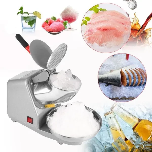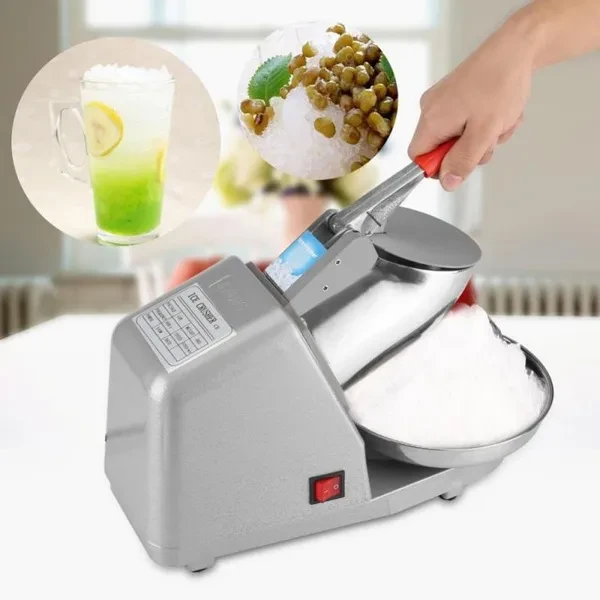 Description: This electric ice crusher is great to make troublesome big ice cubes into snow cone at ease. Aluminum alloy main body is easy to clean and rust resistant. Stable heavy cast ABS base adds extra stability. It features easy operation and fast crushing efficiency. Great for fast-food stores, cafe, school canteen, Features: The upgraded groove fits both tray and cup to contain shaved ices, more practical. With a drain pipe to avoid a wet working environment after use. It adopts double shaving blades, which greatly increases the crush efficiency and meets the demand of commercial use. Designed with an extra protective cover to protect users from splashing ice dice. The handle is covered with insulated rubber to ensure safe and non-slip operation. Specifications: Condition: 100% Brand New Material: ABS + Aluminum Alloy Color: Silver Gray Plug Type: US Plug/AU Plug Power: 110W Voltage: 110~240V Frequency: 50Hz Speed: 1350rpm Crushing Weight: 85kg/hr Total Height: approx. 29.5cm / 11.61inch Width: approx. 36cm / 14.17inch Length: approx. 16cm / 6.30inch Weight: approx. 5301g Package Included: 1 x Electric Ice Crusher 1 x Scoop 1 x Drain Pipe 1 x Stainless Steel Bowl Note: 1. Please allow 0-2cm error due to manual measurement. Thanks for your understanding. 2. Monitors are not calibrated same, item color displayed in photos may be showing slightly different from the real object. Please take the real one as standard.