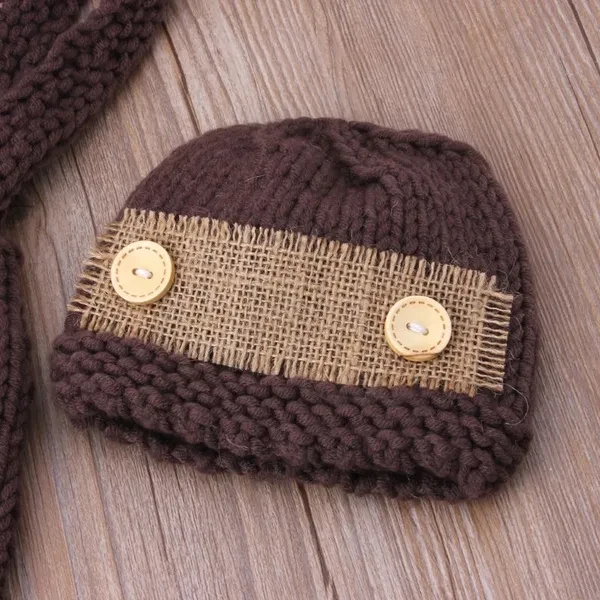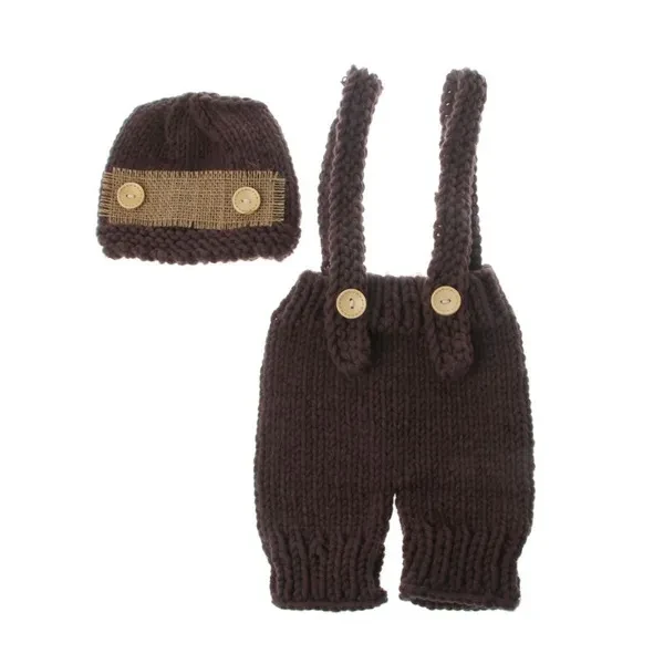 Infant Photography Outfits Newborn Photography Accessories Baby Hat Crochet Costume for Photo Shooting Retro Baby Photo Props ANO