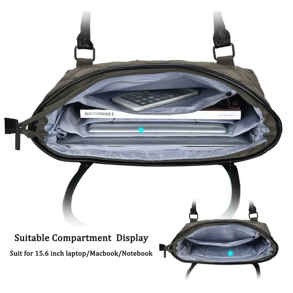 Feature: 1. External Size: 44CM x 31CM x 7.62CM(17.5x12.3x3inch).Weight:620g(1.4lb) laptop bag handle strap drop: 10 (handle strap can’t adjust), suitable most 15.6 inch Laptop, ideal choice for college, travel, office work or business trip. 2. Light weight & stylish design. Bag is made by top quality nylon material which provides functions of water resistance and scratch-proof. very attractive,lightweight design,spacious and practical,Suitable for shopping.business or outside travel. 3. Separate Compartments for 15.6” laptop and iPad 2/3/4//Air/Air2.with soft foam to fix your laptop.Roomy Spacious inside for your chargers.books or clothes. 4. MULTI-COMPARTMENTS&POCKETS: Laptop tote bag included 2 main soft foam pocket for your laptop and iPad, other 1 compartments. Plenty of space for A4 books and daily items, 1 zipper pocket for your cell phone mouse cards pen and keys. 5. Personalized good looking appearance with various colors, ideal for using as business travel.outside shopping.Nice size admirably suits college fashion lady and adults. Package Includes: 1x Bag