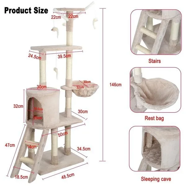 Large Multilevel Cat Tree Scratching Post Kitten Climbing Tower Activity Centre