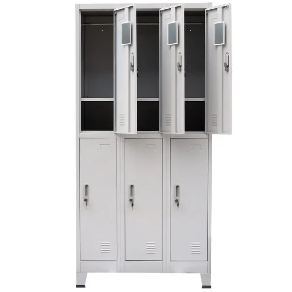 This locker cabinet will not only be ideal for sports locker rooms or company changing rooms, but can also add a cool, industrial touch to the office or school. With 6 separate compartments with doors, this locker cabinet has ample storage space for keeping clothes and other personal belongings safe. Each compartment has a hanger bar, a mirror and a name card holder. The plastic feet prevent your floors from getting scratched up. This locker cabinet is made of high-quality steel, making it durable as well as easy to clean. Assembly is easy. Colour: Grey Material: Steel Dimensions: 90 x 45 x 180 cm (W x D x H) With 6 hanging bars and 6 shelves With a mirror and a name card holder in each compartment With 6 lockable doors with an opening angle of 130° and 12 keys Maximum load capacity per shelf: 10 kg With plastic foot pads Easy assembly WARNING: In order to prevent overturning, this product must be used with the wall attachment device provided More details about preventing your furniture from tipping over can be found here https://www.vidaxl.co.uk/media/wysiwyg/documents/prevent_tipping_over/UK.p