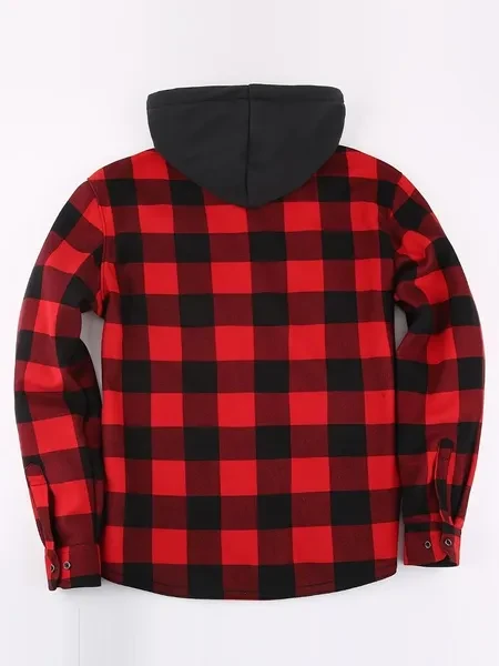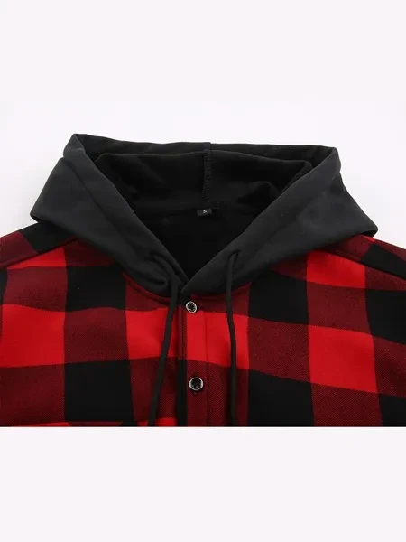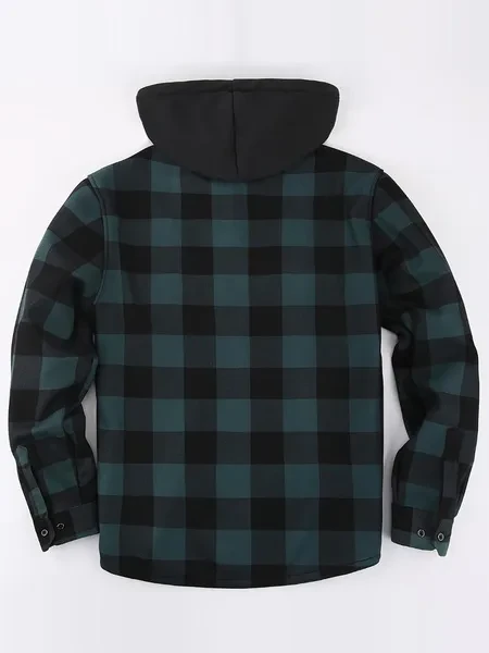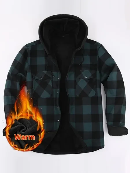Loose Jacket Men's Autumn and Winter Warm Jacket Fashion Casual Plaid Long Sleeve Pocket Hooded Jacket