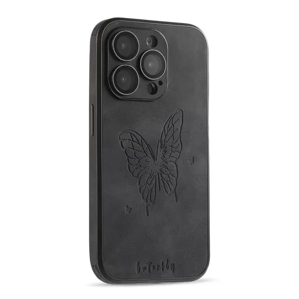 Luxury Leather Butterfly Camera Lens Film Protect Phone Case For IPhone 15 14 13 12 Pro Max Camera Protection Shockproof IPhone Shell Back Cover