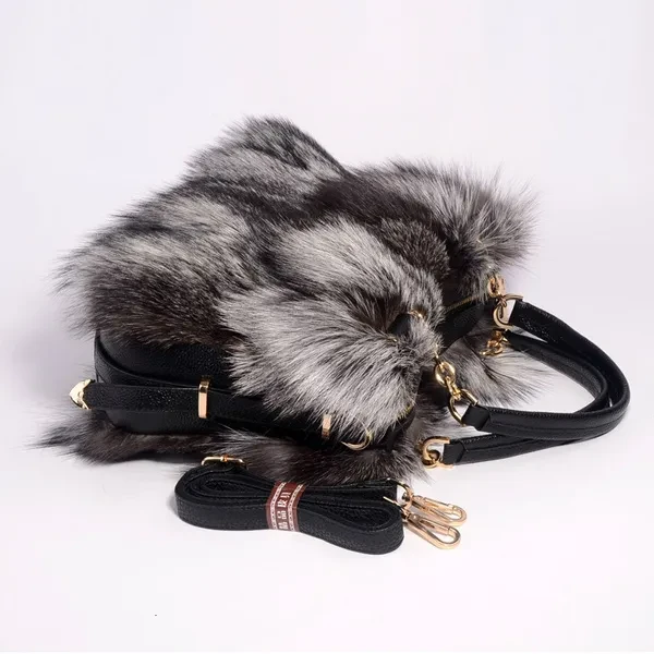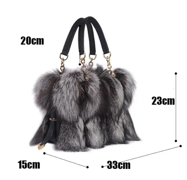 Luxury Real Fox Fur Woman Shoulder Bag Totes Brand Party Bag Ladies HandBags