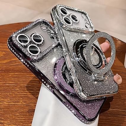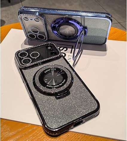 Compatibility: The Magnetic Glitter Stand for iPhone 17 Pro Case is specifically designed to be compatible with MagSafe, allowing you to effortlessly attach and remove your phone from the magnetic wireless charger